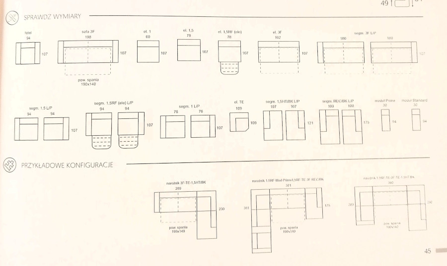- narożnik w wersji lewostronnej oraz prawostronnej
