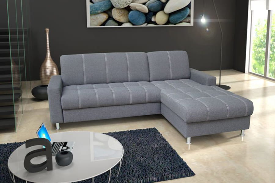- narożnik z funkcją spania ( typu „DELFIN” jest mechanizmem stosowanym zazwyczaj w narożnikach. Ze względu na brak możliwości połączenia funkcji z pojemnikiem na pościel, pojemnik ten znajduje się pod drugą częścią narożnika. Rozłożenie powierzchni spania polega na wysunięciu, za pomocą specjalnego uchwytu, zamontowanego na rozsuwanej konstrukcji materaca, który prostym ruchem zrównuje się z siedziskiem mebla. Tak skonstruowana funkcja gwarantuje stabilny i wygodny wypoczynek. )