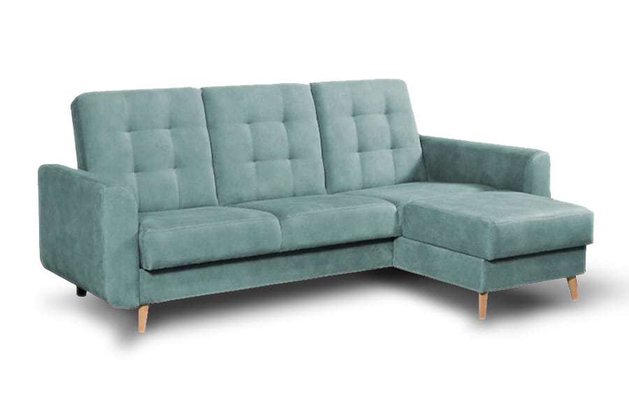 - narożnik z funkcją spania ( typu wersalkowego ) jest szybki i prosty w obsłudze. Pierwszym krokiem, przy rozkładaniu mebli z tego typu mechanizmem, jest podniesienie siedziska, a następnie dociśnięcie go w stronę oparcia do momentu usłyszenia charakterystycznego dźwięku “kilk”. Kolejnym krokiem jest opuszczenie siedziska. Wtedy słyszymy “klak”, który oznacza, że wersalka jest gotowa do spania. Charakterystycznym dla sof z mechanizmem klik-klak jest łączenie na środku, które dzieli powierzchnię na dwie części. W nowoczesnych modelach, w przeciwieństwie do ich starszych wersji, łączenie to jest niemal niewyczuwalne. Obie części mebla tworzą równą powierzchnię, co znacząco podnosi komfort spania. Wersalki wymagają odsunięcia od ściany i najczęściej posiadają pojemnik na pościel. )