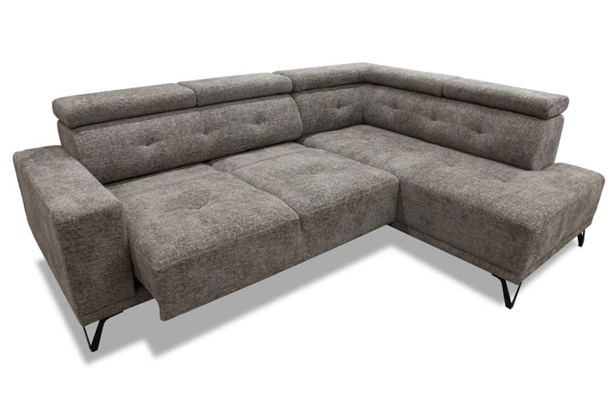 Nowoczesny narożnik z funkcją elektrycznej regulacji siedziska łączy w sobie nowoczesność i komfort, idealnie komponując się z różnorodnymi aranżacjami wnętrz. Jego design akcentowany przez metalowe nóżki podkreśla nowoczesny charakter pomieszczenia. Mebel ten, oprócz zaawansowanych funkcji jak wspomniana regulacja siedziska, oferuje również wyjątkowe wsparcie i wygodę dzięki zastosowaniu wysokiej jakości materiałów i systemów sprężyn. Wybierając ten narożnik, zyskujesz nie tylko elegancki, ale i funkcjonalny element wnętrza, który sprosta oczekiwaniom współczesnego użytkownika.