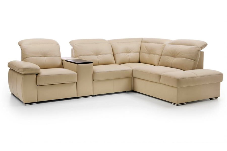 Modułowy narożnik Legend charakteryzuje się subtelną formą i ergonomicznym kształtem. Dzięki regulowanym zagłówkom mebel dopasowuje się do każdej sylwetki, by po chwili zapewnić wyjątkowy relaks i niezastąpioną strefę komfortu. Na uwagę zasługuje podręczny blat w funkcji stolika, który będzie praktycznym rozwiązaniem do ulokowania kubka z herbatą, pilota, a także ulubionej książki. Narożnik Legend posiada dyskretny pojemnik wewnątrz mebla, który pozwoli przechować potrzebną pościel i inne akcesoria. Oryginalne przeszycia na oparciach mebla dodają ponadczasowego designu, dzięki czemu mebel wpasuje się zarówno w nowoczesne, jak i te bardziej klasyczne aranżacje. Szeroki wachlarz kolorów i wysokiej jakości tkanin zapewni wizualną spójność w każdym, nawet najbardziej wymagającym wnętrzu.