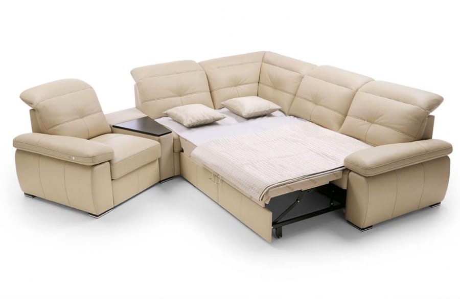 - funkcja spania szufladowo-podnośnikowa ( rozłożenie polega na odblokowaniu specjalnego zaczepu blokującego w narożniku, który zwalnia mechanizm przesuwny, a następnie przesunięciu części mobilnej wyposażonej w kółka )