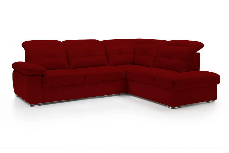 Narożnik Legend to doskonały wybór do każdego wnętrza. Prosta, nienachalna forma została ozdobiona symetrycznymi przeszyciami i pikowaniami na oparciu. Ruchome zagłówki gwarantują odpowiednią postawę podczas siedzenia nawet osobom bardzo wysokim. Wypełnienie z pianki wysokoeastycznej i sprężyn falistych gwarantuje odpowiednią trwałość mebla i odporność na odkształcenia. Wysunięta strona narożnika Legend może śmiało pełnić funkcję szezlonga i zapewni komfort podczas leniwego wieczoru filmowego. Kanapa pomieści całą rodzinę, dlatego stanowi idealne uzupełnienie każdego salonu. Funkcja spania sprawdzi się, aby przenocować gości, a mały pojemnik na pościel stanowi dobrą skrytkę także na inne przedmioty. Całą kolekcję Legend wyróżnia modułowość, pozwalająca na tworzenie dowolnych układów meblowych. Stwórz własny, wymarzony narożnik, który doskonale wkomponuje się w Twoje wnętrze.
