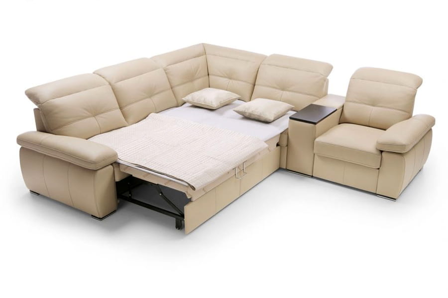 - funkcja spania szufladowo-podnośnikowa ( rozłożenie polega na odblokowaniu specjalnego zaczepu blokującego w narożniku, który zwalnia mechanizm przesuwny, a następnie przesunięciu części mobilnej wyposażonej w kółka )