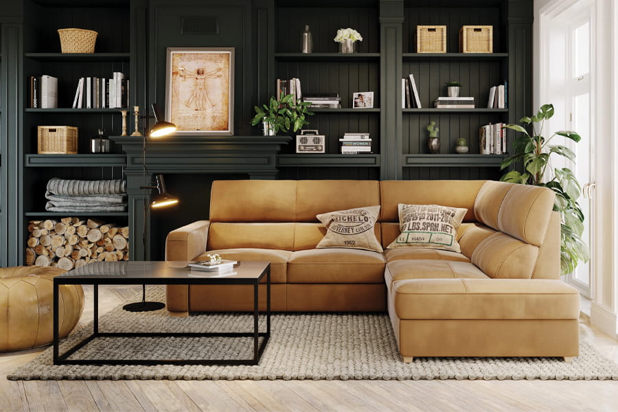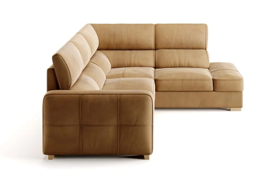 - narożnik tapicerowany w tkaninie i skórze naturalnej