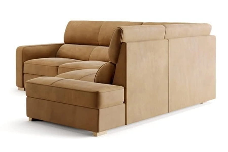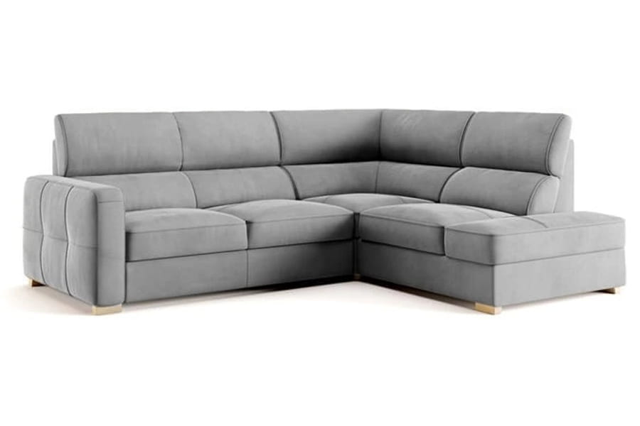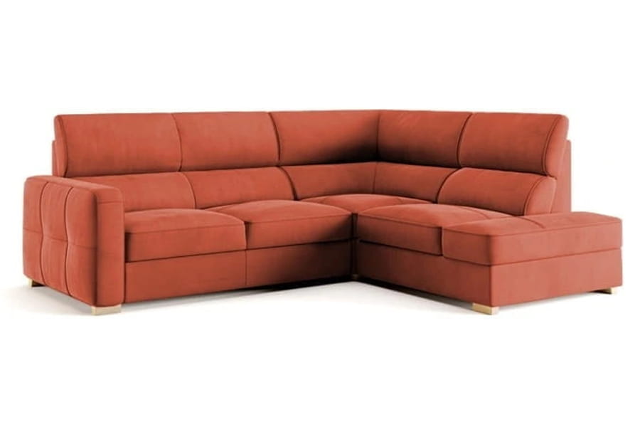 Narożnik Leonardo o wymiarach 254x98x210 cm dostępny w wersji lewostronnej oraz prawostronnej. Model został wyposażony w funkcję spania typu delfin o powierzchni spania 191x120 cm oraz obszerny pojemnik na pościel ulokowany w otomanie. Siedzisko o wysokości 46 cm zostało wypełnione sprężyną falistą oraz pianką wysokoelastyczną, natomiast oparcie pasami elastycznymi, pianką poliuretanową oraz wkładem silikonowym. Całość utrzymują drewniane nóżki, do wyboru w szerokiej gamie kolorystycznej. Korzystając z konfiguratora możesz wybrać dowolne obicie tkaninowe, dzięki któremu spersonalizujesz mebel według swojego ulubionego stylu.