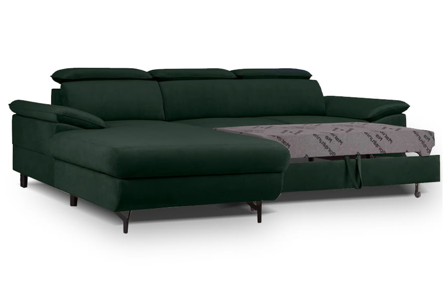 - narożnik z funkcją spania ( typu „DELFIN” jest mechanizmem stosowanym zazwyczaj w narożnikach. Ze względu na brak możliwości połączenia funkcji z pojemnikiem na pościel, pojemnik ten znajduje się pod drugą częścią narożnika. Rozłożenie powierzchni spania polega na wysunięciu, za pomocą specjalnego uchwytu, zamontowanego na rozsuwanej konstrukcji materaca, który prostym ruchem zrównuje się z siedziskiem mebla. Tak skonstruowana funkcja gwarantuje stabilny i wygodny wypoczynek. )