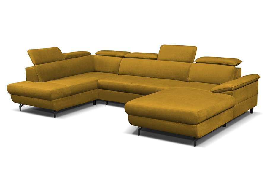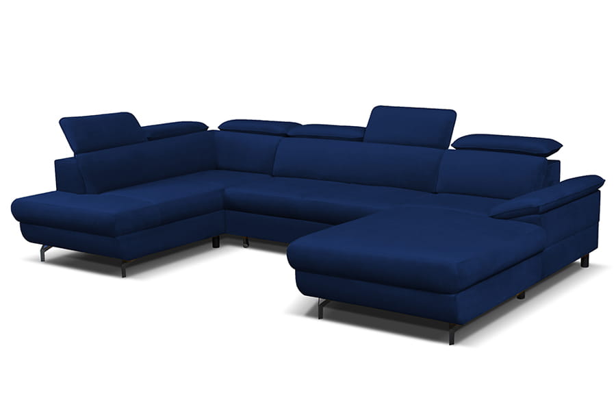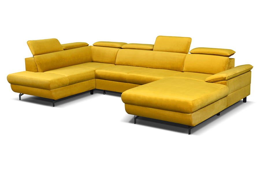 - narożnik w kształcie litry U z funkcją spania ( typu „DELFIN” jest mechanizmem stosowanym zazwyczaj w narożnikach. Ze względu na brak możliwości połączenia funkcji z pojemnikiem na pościel, pojemnik ten znajduje się pod drugą częścią narożnika. Rozłożenie powierzchni spania polega na wysunięciu, za pomocą specjalnego uchwytu, zamontowanego na rozsuwanej konstrukcji materaca, który prostym ruchem zrównuje się z siedziskiem mebla. Tak skonstruowana funkcja gwarantuje stabilny i wygodny wypoczynek. )
