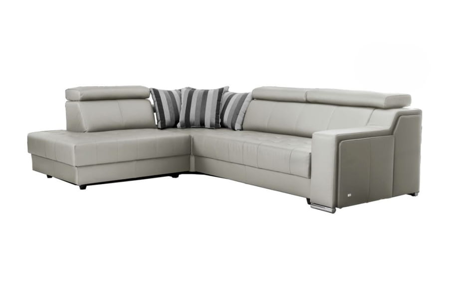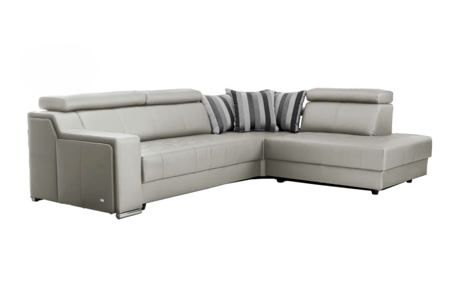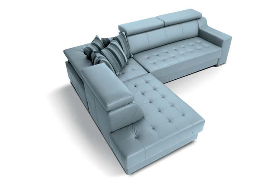 Nowoczesna linia oraz niebywała elegancja – te cechy najtrafniej charakteryzują stylowy design narożnika Marsala. Oryginalności i charakteru dodają mu geometryczne pikowania na siedzisku. Dzięki ruchomym zagłówkom możliwe jest dostosowanie wysokości oparcia do każdego użytkownika, zapewniając mu najbardziej komfortową pozycję ciała podczas relaksu. Narożna wstawka posłuży jako półka nadając meblowi elegancji i szyku. Praktyczna funkcja spania to kolejna z wielu funkcjonalności narożnika, dzięki której zyskamy komfortowe miejsce do przenocowania gości. Poduszki, kołdry oraz inne tekstylia pomieści zaś praktyczny pojemnik umieszczony pod siedziskiem.
