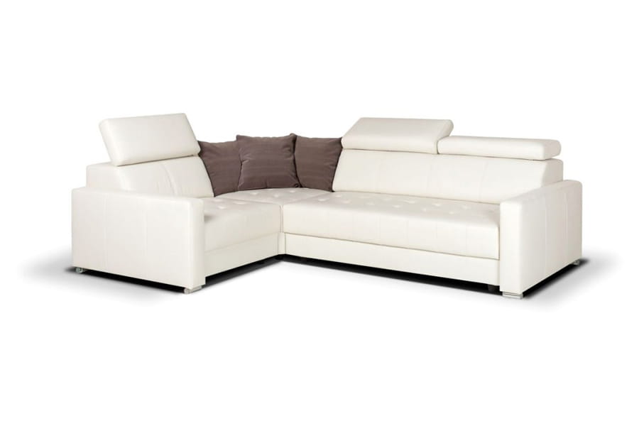 Elegancki narożnik Marsala to połączenie wygody i dobrego stylu. Idealna propozycja zarówno do nowoczesnych, jak i klasycznych aranżacji. Narożnik posiada regulowane zagłówki, co sprawia, że można wygodnie oprzeć głowę podczas wypoczynku. Narożna wstawka posłuży jako półka nadając meblowi elegancji i szyku. Ponadto mebel wyposażono w funkcję spania oraz wygodny pojemnik na pościel. Narożnik dostępny jest w wersji prawej lub lewej.