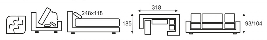 - narożnik z funkcją spania ( system “delfin” to jeden z najbardziej popularnych mechanizmów rozkładania, który najczęściej stosowany jest w narożnikach. Rozłożenie mebla z zastosowanym systemem “delfin” polega na wyciągnięciu spod siedziska wbudowanej szuflady, a następnie wysunięciu znajdującej się w niej powierzchni do spania przy pomocy specjalnego uchwytu. Siedzisko oraz wysunięta część równają się na jednym poziomie tworząc powierzchnię do spania )