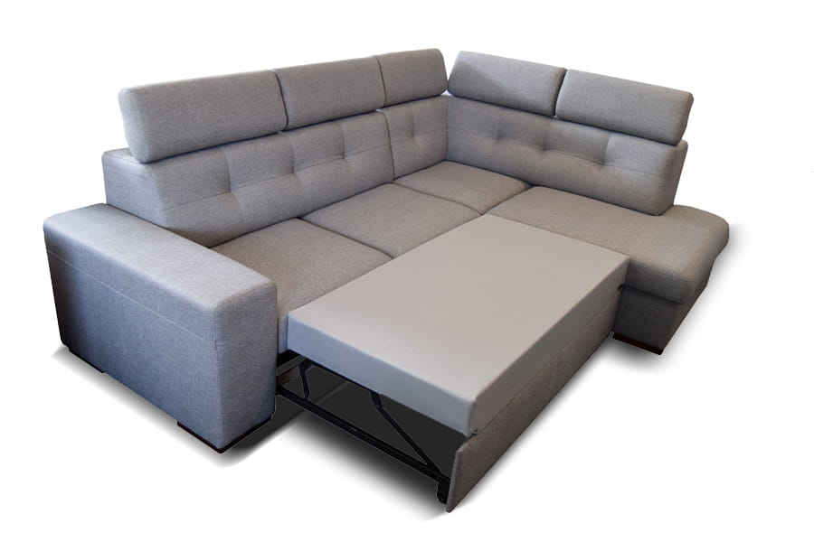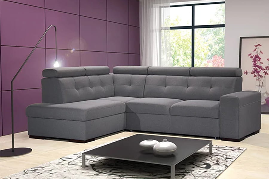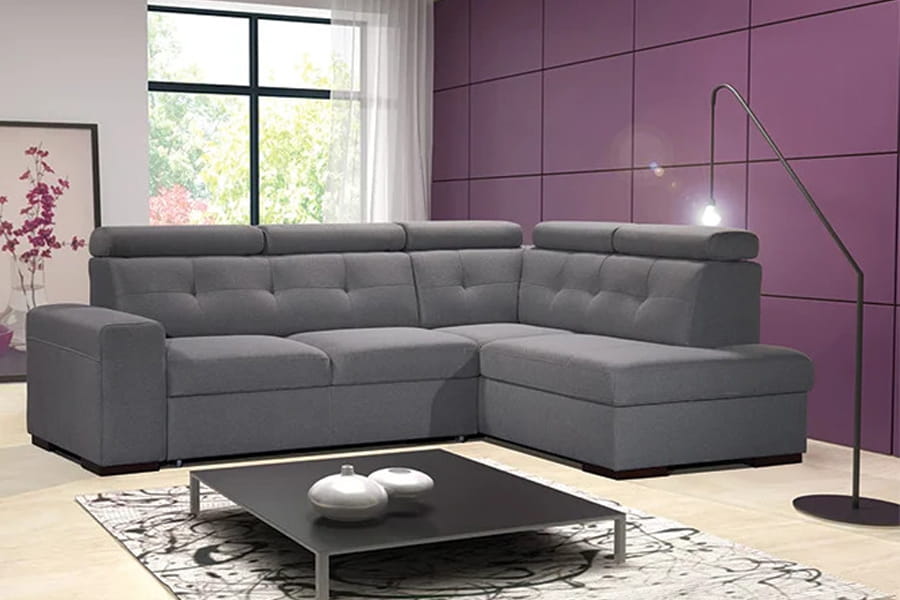 Zgrabny narożnik Metro Pik nie tylko wzbogaci aranżację salonu, ale także stworzy w nim przytulną strefę do popołudniowego wypoczynku czy spotkań z najbliższymi. Wyposażony w funkcję spania z wygodnym mechanizmem rozkładania typu delfin oraz praktyczny pojemnik na pościel w razie potrzeby może posłużyć jako komfortowe miejsce noclegowe dla gości. Narożnik występuje w wersji lewostronnej oraz prawostronnej.