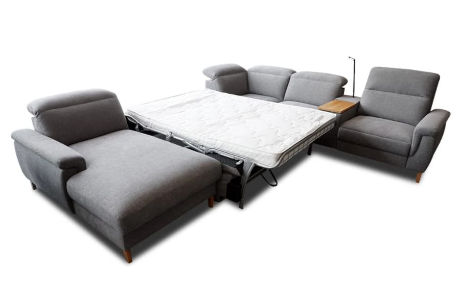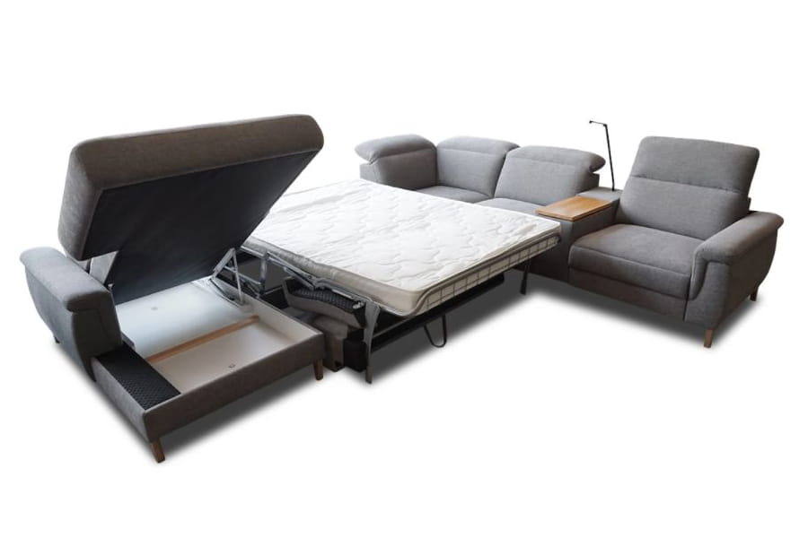 - narożnik z funkcją spania ( typu włoskiego ) i pojemnikiem na pościel