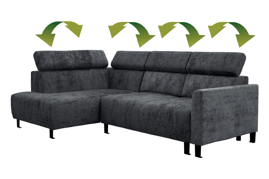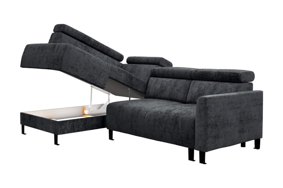 - narożnik z funkcją spania ( bardzo prosty system rozkładania stosowany w narożnikach. Jego atutem jest łatwe rozkładanie spania “jednym ruchem”. Rozkładanie polega na zdjęciu ewentualnych poduch oparciowych, a następnie uniesienie siedziska do góry i opuszczeniu w przód. Równocześnie, samoczynnie spod siedziska, wysuwa się druga powierzchnia do spania. Jest to przemyślane rozwiązanie ponieważ nie uszkadza podłogi podczas składania i rozkładania mebla. Nie trzeba składać oparcia, a mechanizm jest bardzo praktyczny i łatwy w obsłudze. )