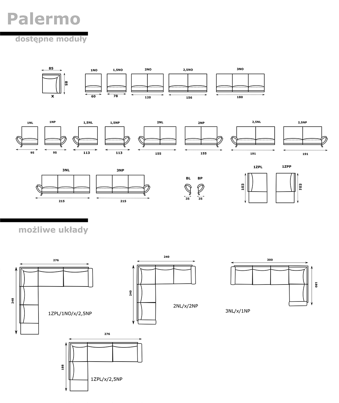 Moduł (60) zakończony pufą ( całość 103 szerokości )