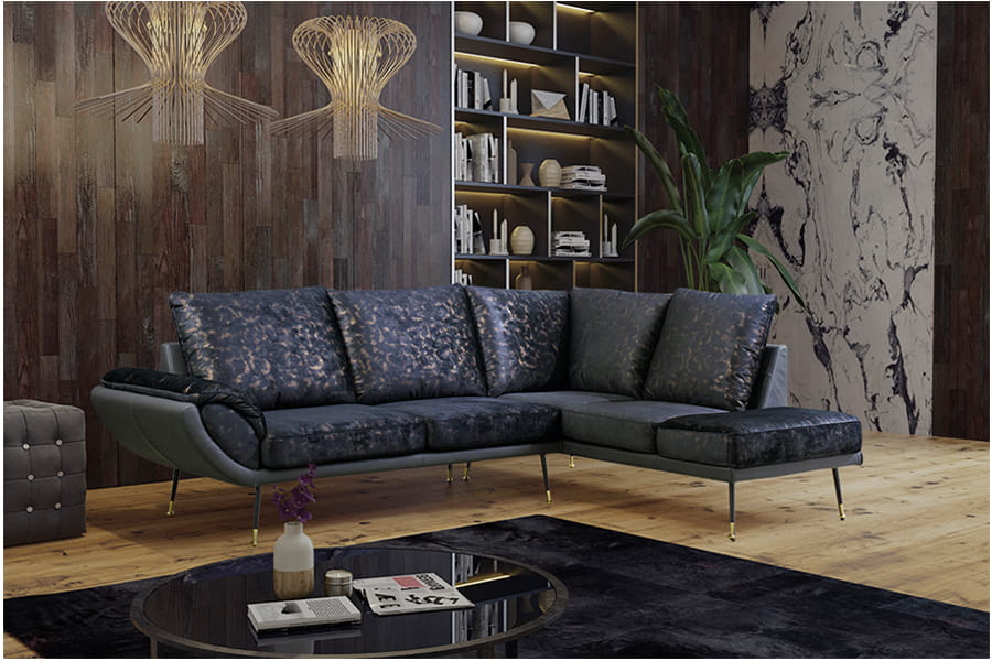 - narożnik tapicerowany w tkaninie lub skórze