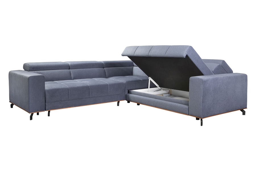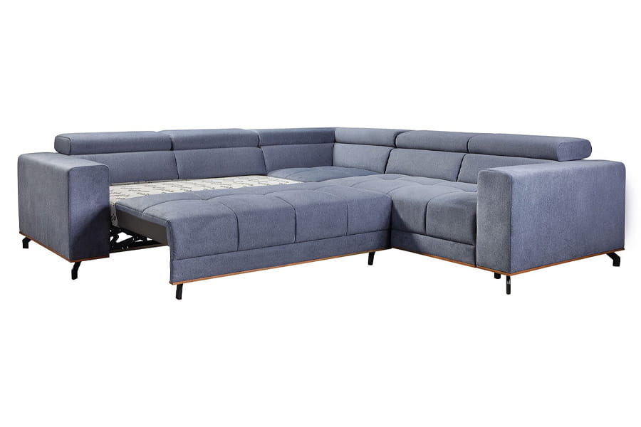 - narożnik z funkcją spania ( bardzo prosty system rozkładania stosowany w narożnikach. Jego atutem jest łatwe rozkładanie spania “jednym ruchem”. Rozkładanie polega na zdjęciu ewentualnych poduch oparciowych, a następnie uniesienie siedziska do góry i opuszczeniu w przód. Równocześnie, samoczynnie spod siedziska, wysuwa się druga powierzchnia do spania. Jest to przemyślane rozwiązanie ponieważ nie uszkadza podłogi podczas składania i rozkładania mebla. Nie trzeba składać oparcia, a mechanizm jest bardzo praktyczny i łatwy w obsłudze. )