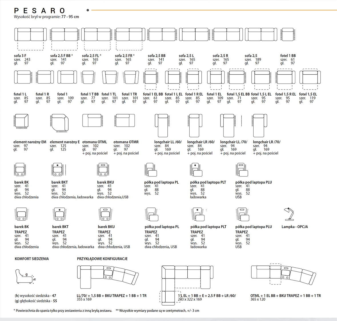 Narożnik PESARO 1ELL-PL-1BB-EM-2,5FR - FENIKS MEBLE