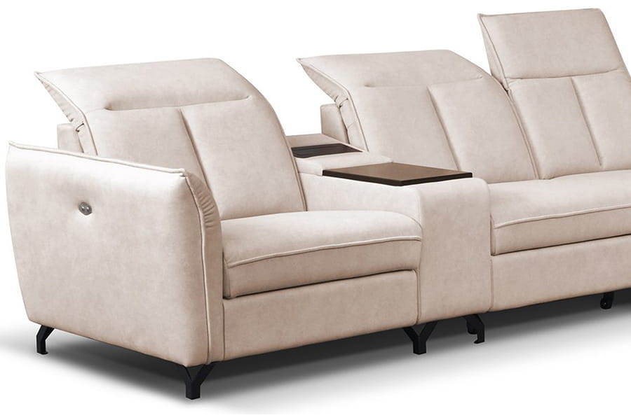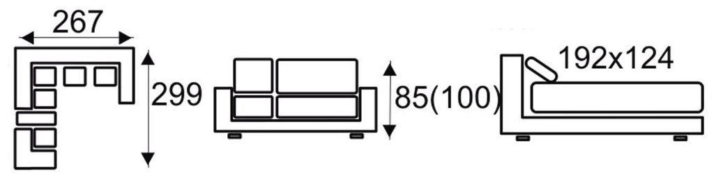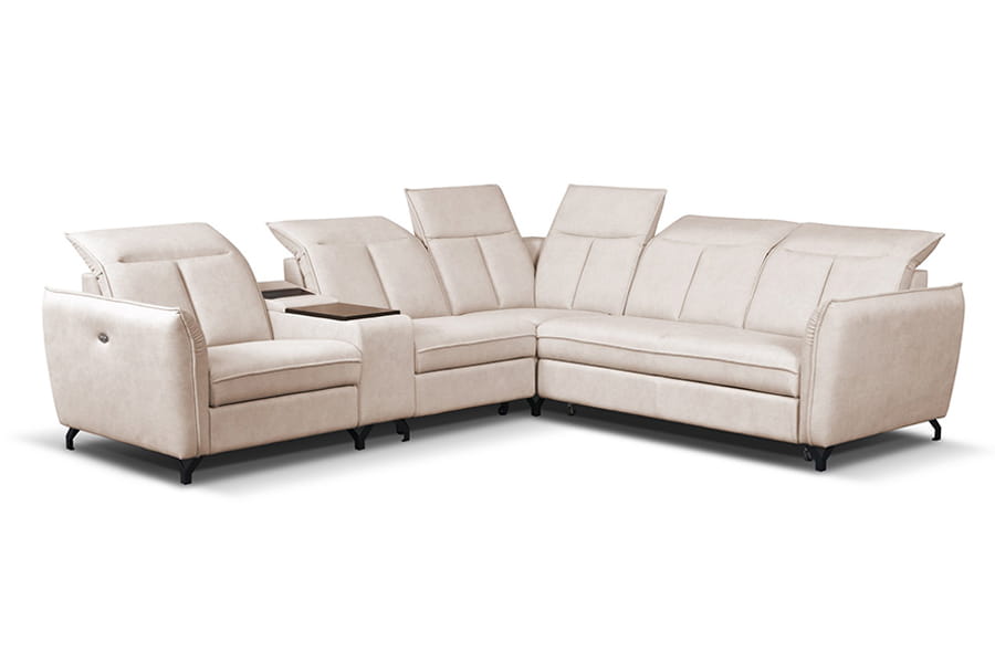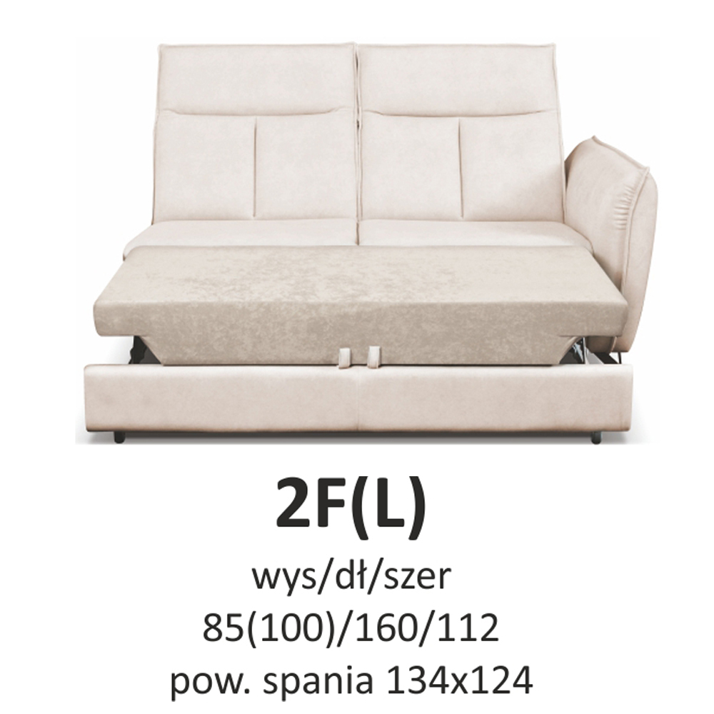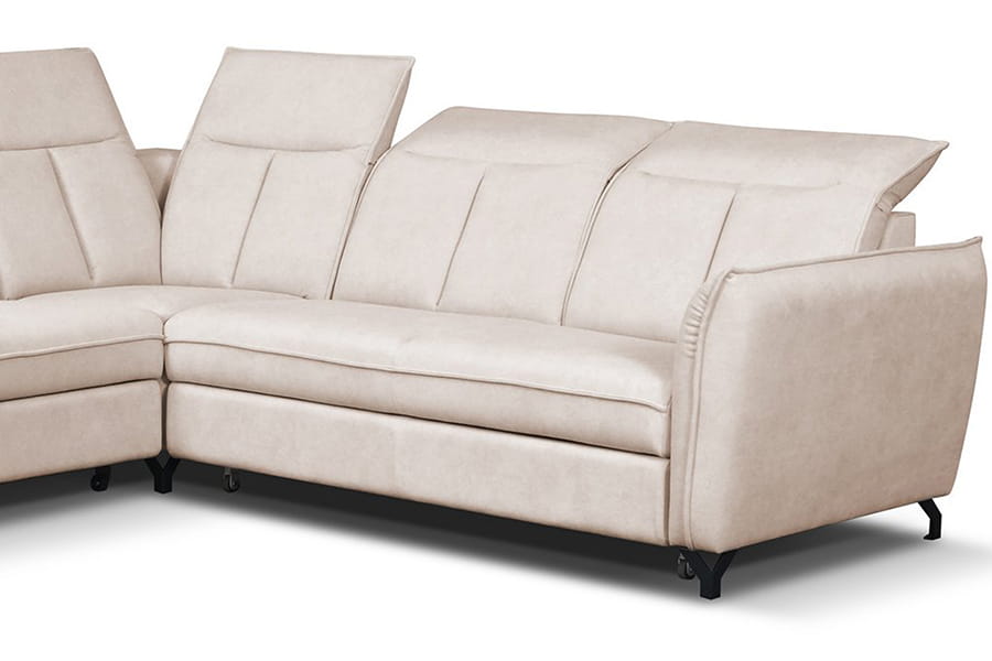 - narożnik z funkcją spania ( typu „DELFIN” jest mechanizmem stosowanym zazwyczaj w narożnikach. Ze względu na brak możliwości połączenia funkcji z pojemnikiem na pościel, pojemnik ten znajduje się pod drugą częścią narożnika. Rozłożenie powierzchni spania polega na wysunięciu, za pomocą specjalnego uchwytu, zamontowanego na rozsuwanej konstrukcji materaca, który prostym ruchem zrównuje się z siedziskiem mebla. Tak skonstruowana funkcja gwarantuje stabilny i wygodny wypoczynek. )