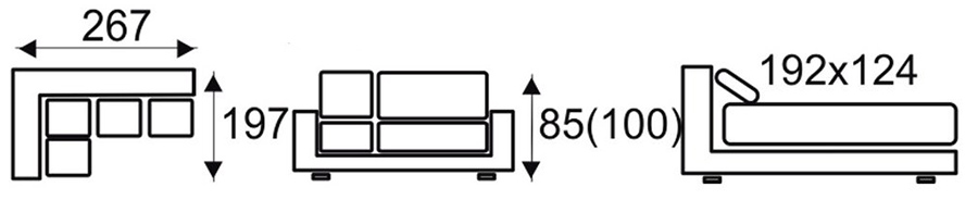 - narożnik z funkcją spania ( typu „DELFIN” jest mechanizmem stosowanym zazwyczaj w narożnikach. Ze względu na brak możliwości połączenia funkcji z pojemnikiem na pościel, pojemnik ten znajduje się pod drugą częścią narożnika. Rozłożenie powierzchni spania polega na wysunięciu, za pomocą specjalnego uchwytu, zamontowanego na rozsuwanej konstrukcji materaca, który prostym ruchem zrównuje się z siedziskiem mebla. Tak skonstruowana funkcja gwarantuje stabilny i wygodny wypoczynek. )