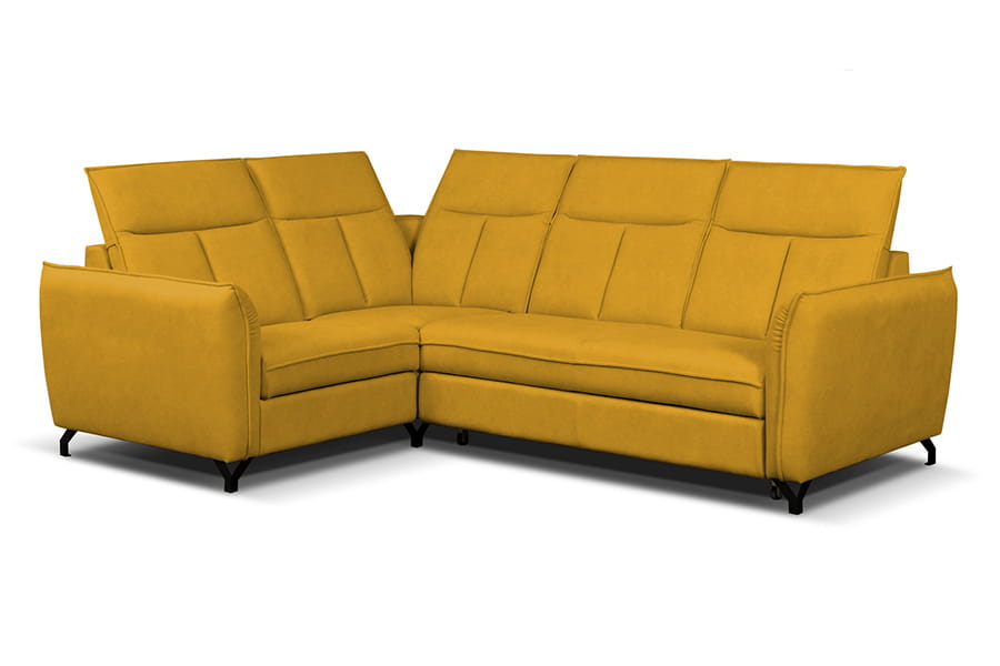 - narożnik z funkcją spania ( typu „DELFIN” jest mechanizmem stosowanym zazwyczaj w narożnikach. Ze względu na brak możliwości połączenia funkcji z pojemnikiem na pościel, pojemnik ten znajduje się pod drugą częścią narożnika. Rozłożenie powierzchni spania polega na wysunięciu, za pomocą specjalnego uchwytu, zamontowanego na rozsuwanej konstrukcji materaca, który prostym ruchem zrównuje się z siedziskiem mebla. Tak skonstruowana funkcja gwarantuje stabilny i wygodny wypoczynek. )