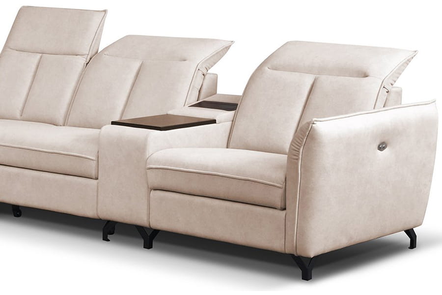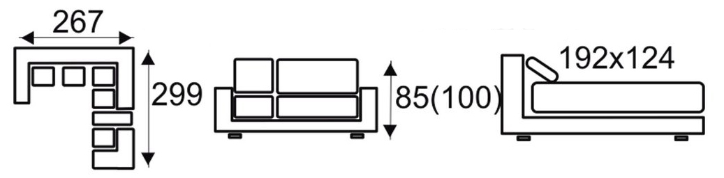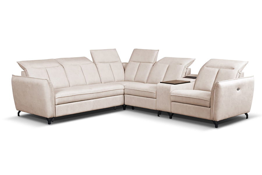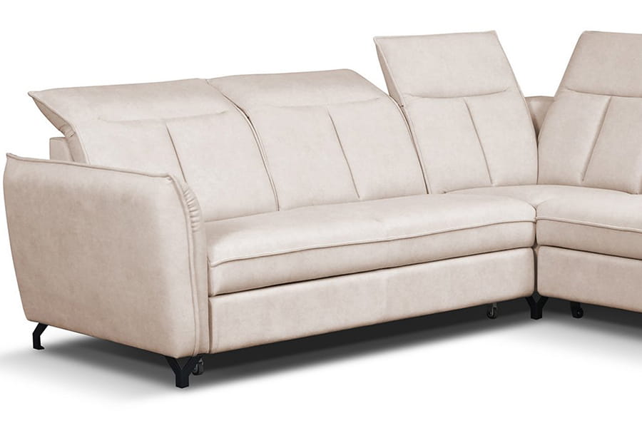 - narożnik z funkcją spania ( typu „DELFIN” jest mechanizmem stosowanym zazwyczaj w narożnikach. Ze względu na brak możliwości połączenia funkcji z pojemnikiem na pościel, pojemnik ten znajduje się pod drugą częścią narożnika. Rozłożenie powierzchni spania polega na wysunięciu, za pomocą specjalnego uchwytu, zamontowanego na rozsuwanej konstrukcji materaca, który prostym ruchem zrównuje się z siedziskiem mebla. Tak skonstruowana funkcja gwarantuje stabilny i wygodny wypoczynek. )