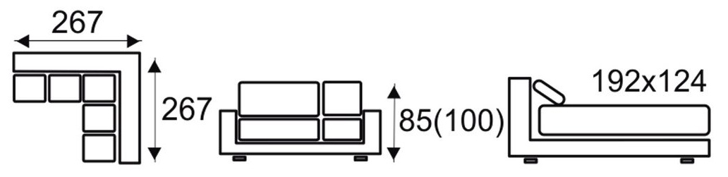- narożnik z funkcją spania ( typu „DELFIN” jest mechanizmem stosowanym zazwyczaj w narożnikach. Ze względu na brak możliwości połączenia funkcji z pojemnikiem na pościel, pojemnik ten znajduje się pod drugą częścią narożnika. Rozłożenie powierzchni spania polega na wysunięciu, za pomocą specjalnego uchwytu, zamontowanego na rozsuwanej konstrukcji materaca, który prostym ruchem zrównuje się z siedziskiem mebla. Tak skonstruowana funkcja gwarantuje stabilny i wygodny wypoczynek. )