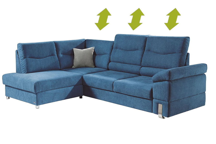 Narożnik SALSA TREND to komfortowy narożnik dla wymagających osób. Dzięki zastosowaniu dodatkowych wałków pod lędźwiami (opcja), zwiększamy komfort użytkowania. Narożnik o podwyższonym standardzie użytkowania, dzięki zastosowaniu podwójnego systemu sprężynowania w siedzisku tzn. sprężyn bonellowych i falistych. W oparciu zastosowano piankę wysokoelastyczną HR. Podnoszone do góry oparcia wpływają korzystnie na komfort wypoczynku. Mebel wyposażony jest w nowoczesną funkcję spania typu puma oraz pojemnik na pościel.
