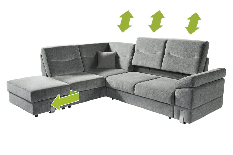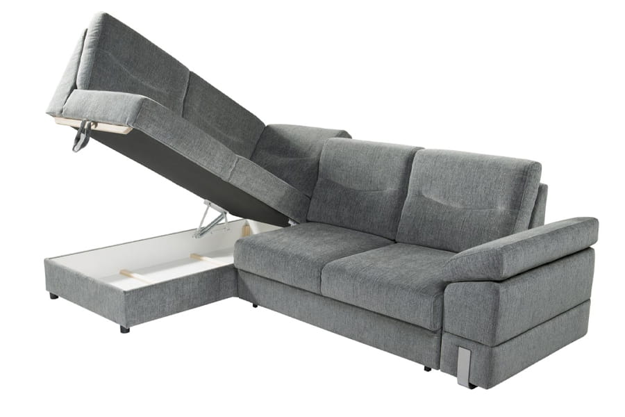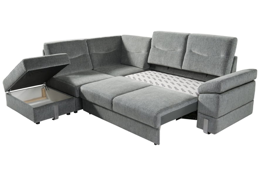 - narożnik z funkcją spania ( bardzo prosty system rozkładania stosowany w narożnikach. Jego atutem jest łatwe rozkładanie spania “jednym ruchem”. Rozkładanie polega na zdjęciu ewentualnych poduch oparciowych, a następnie uniesienie siedziska do góry i opuszczeniu w przód. Równocześnie, samoczynnie spod siedziska, wysuwa się druga powierzchnia do spania. Jest to przemyślane rozwiązanie ponieważ nie uszkadza podłogi podczas składania i rozkładania mebla. Nie trzeba składać oparcia, a mechanizm jest bardzo praktyczny i łatwy w obsłudze. )