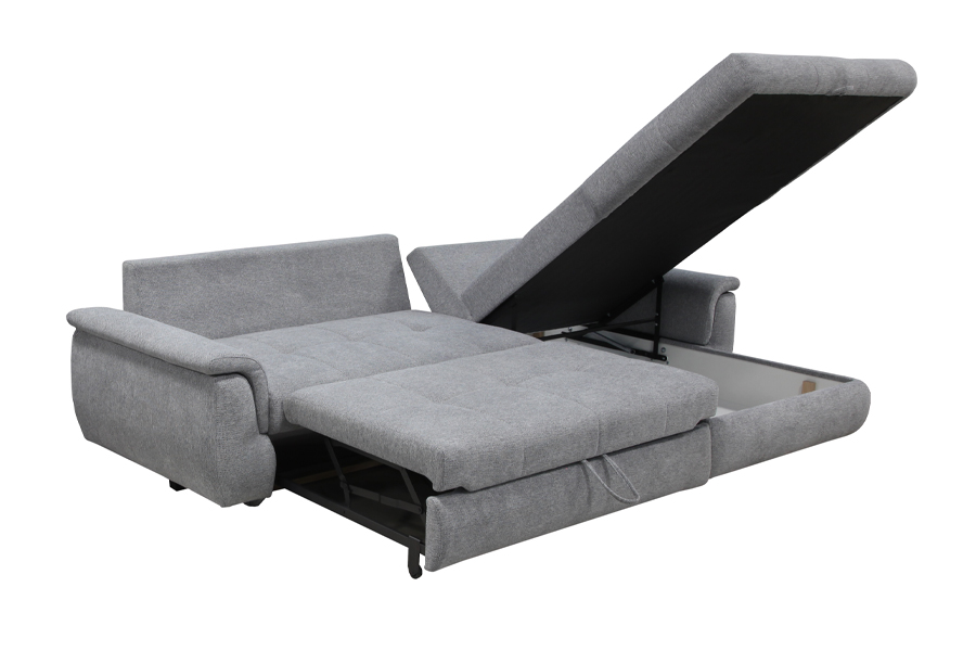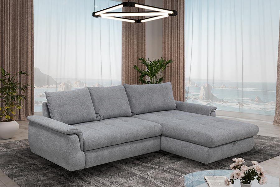 Nowoczesny narożnik Sandy reprezentuje apogeum komfortu i nowoczesnej estetyki, doskonale harmonizując z różnorodnymi aranżacjami wnętrzarskimi. Jego wyjątkowy design jest podkreślony przez oryginalne detale, które sprawiają, że narożnik ten jest nie tylko meblem, ale również istotnym elementem dekoracyjnym każdej przestrzeni. Zbudowany z najwyższej jakości materiałów i zatroszczenie o każdy detal sprawiają, że Sandy oferuje niezrównane wsparcie i został stworzony z myślą o trwałości. Ten narożnik łączy w sobie ponadczasową elegancję z praktycznością, oferując wygodne miejsce do siedzenia, do spania i jednocześnie stanowiąc wyjątkowy element dekoracyjny, który wprowadza charakter i styl do każdego wnętrza.