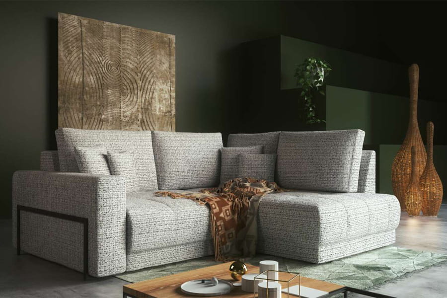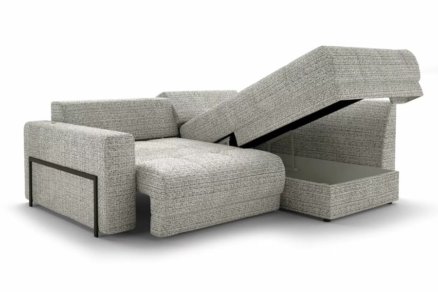 - narożnik z funkcją spania ( bardzo prosty system rozkładania stosowany w narożnikach. Jego atutem jest łatwe rozkładanie spania “jednym ruchem”. Rozkładanie polega na zdjęciu ewentualnych poduch oparciowych, a następnie uniesienie siedziska do góry i opuszczeniu w przód. Równocześnie, samoczynnie spod siedziska, wysuwa się druga powierzchnia do spania. Jest to przemyślane rozwiązanie ponieważ nie uszkadza podłogi podczas składania i rozkładania mebla. Nie trzeba składać oparcia, a mechanizm jest bardzo praktyczny i łatwy w obsłudze. )