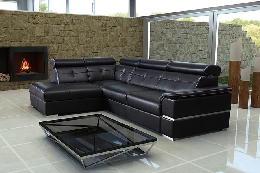- sofa tapicerowana w tkaninie lub skórze naturalnej