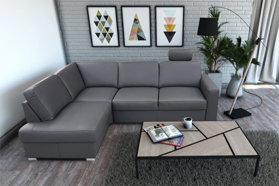 - narożnik tapicerowany w tkaninie lub skórze