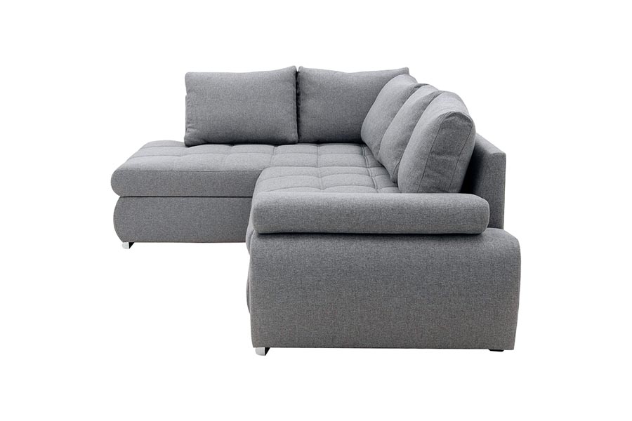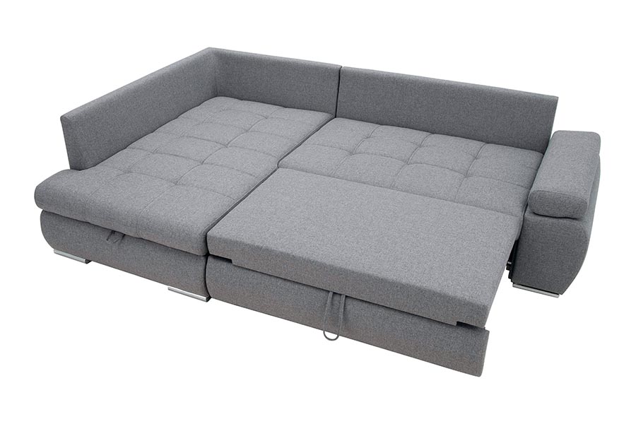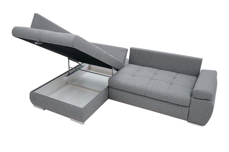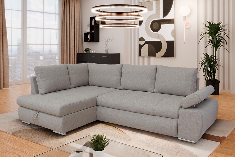 Nowoczesny narożnik Sky reprezentuje apogeum komfortu i nowoczesnej estetyki, doskonale harmonizując z różnorodnymi aranżacjami wnętrzarskimi. Jego wyjątkowy design jest podkreślony przez oryginalne detale, które sprawiają, że narożnik ten jest nie tylko meblem, ale również istotnym elementem dekoracyjnym każdej przestrzeni. Zbudowany z najwyższej jakości materiałów i zatroszczenie o każdy detal sprawiają, że Sky oferuje niezrównane wsparcie i został stworzony z myślą o trwałości. Ten narożnik łączy w sobie ponadczasową elegancję z praktycznością, oferując wygodne miejsce do siedzenia, do spania i jednocześnie stanowiąc wyjątkowy element dekoracyjny, który wprowadza charakter i styl do każdego wnętrza. Ruchome zagłówki pozwalają dopasować komfort do każdego.