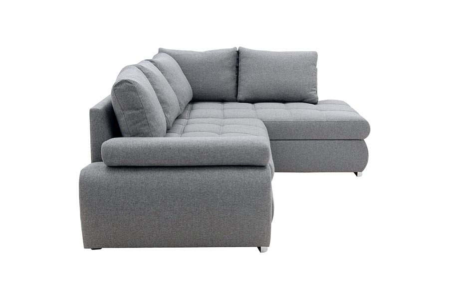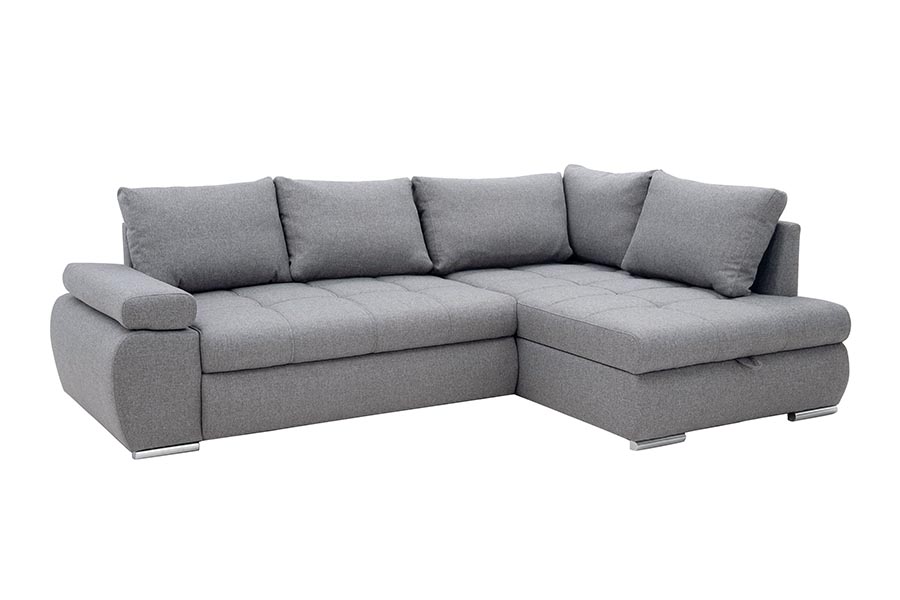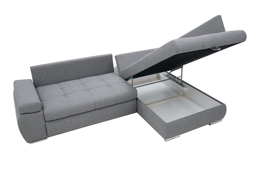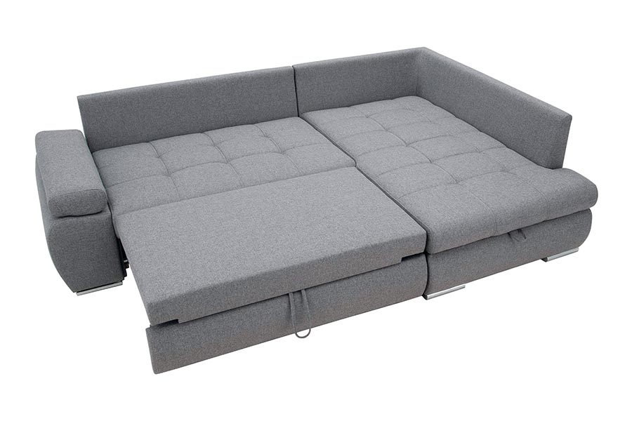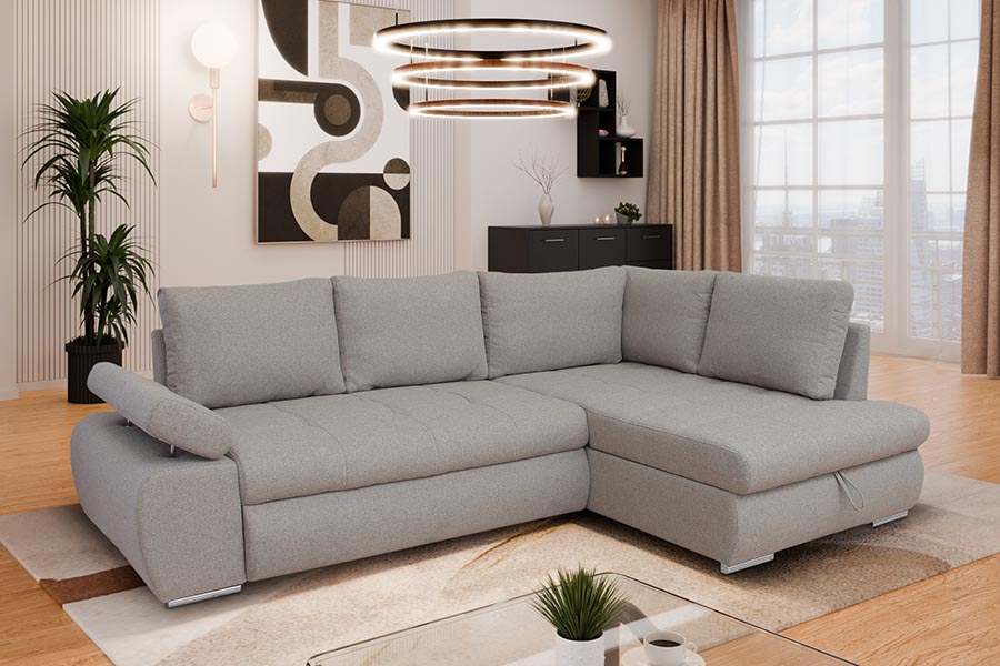 Nowoczesny narożnik Sky reprezentuje apogeum komfortu i nowoczesnej estetyki, doskonale harmonizując z różnorodnymi aranżacjami wnętrzarskimi. Jego wyjątkowy design jest podkreślony przez oryginalne detale, które sprawiają, że narożnik ten jest nie tylko meblem, ale również istotnym elementem dekoracyjnym każdej przestrzeni. Zbudowany z najwyższej jakości materiałów i zatroszczenie o każdy detal sprawiają, że Sky oferuje niezrównane wsparcie i został stworzony z myślą o trwałości. Ten narożnik łączy w sobie ponadczasową elegancję z praktycznością, oferując wygodne miejsce do siedzenia, do spania i jednocześnie stanowiąc wyjątkowy element dekoracyjny, który wprowadza charakter i styl do każdego wnętrza. Ruchome zagłówki pozwalają dopasować komfort do każdego.