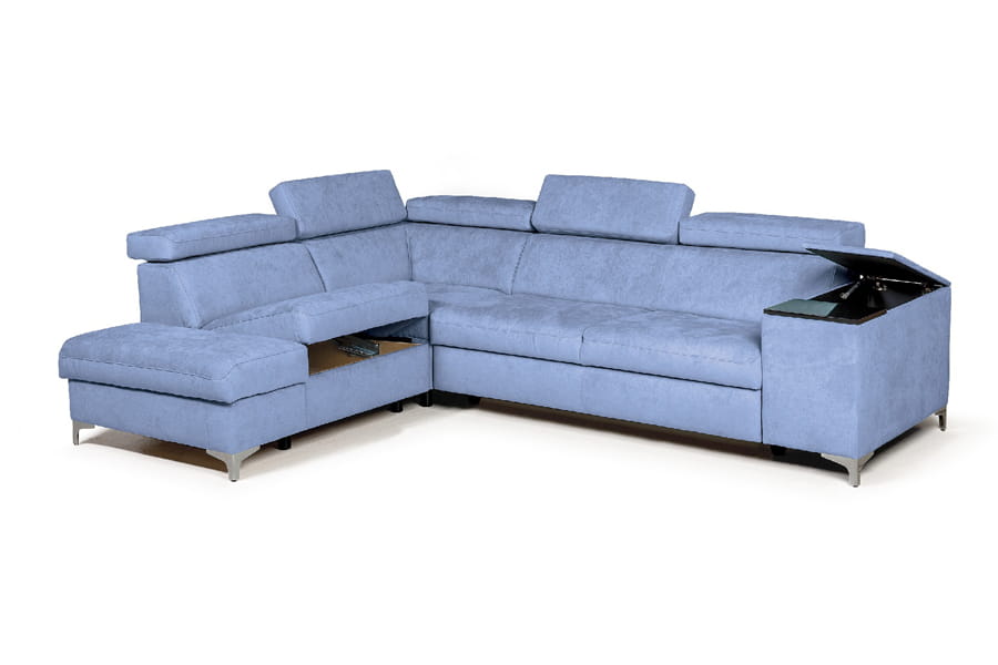 Spoleto to nowoczesny oraz elegancki narożnik modułowy, który zachwyci każdego miłośnika finezyjnych kształtów oraz innowacyjnych rozwiązań meblarskich. Ciekawa linia świetnie sprawdzi się w każdej modernistycznej przestrzeni, gwarantując jednocześnie niezaprzeczalną wygodę oraz nowatorskie rozwiązania technologiczne. Narożnik Spoleto z całą pewnością spełni wymagania najbardziej wymagających klientów, kusząc delikatnie zaokrąglonymi kształtami oraz regulowanymi zagłówkami. Narożnik posiada praktyczną funkcję spania typu delfin oraz dwa pojemniki na pościel. Mebel posiada regulowane zagłówki, umożliwiające dopasowanie wysokości siedziska do wzrostu i preferencji każdego użytkownika. Narożnik dostępny jest w wersji prawostronnej oraz lewostronnej. Mebel ten będzie stanowić gwarancję długoletniego użytkowania oraz niesamowitej wytrzymałości, dzięki zastosowaniu najwyższej jakości materiałów, takich jak sprężyny faliste oraz pianka wysokoelastyczna HR. Ponadto każdy klient będzie miał szansę indywidualnego dopasowania tego ponadczasowego mebla do swoich potrzeb i nawet najbardziej wyrafinowanych aranżacji wnętrz, dzięki szerokiej dostępności tkanin oraz kolorystyki wybarwień.