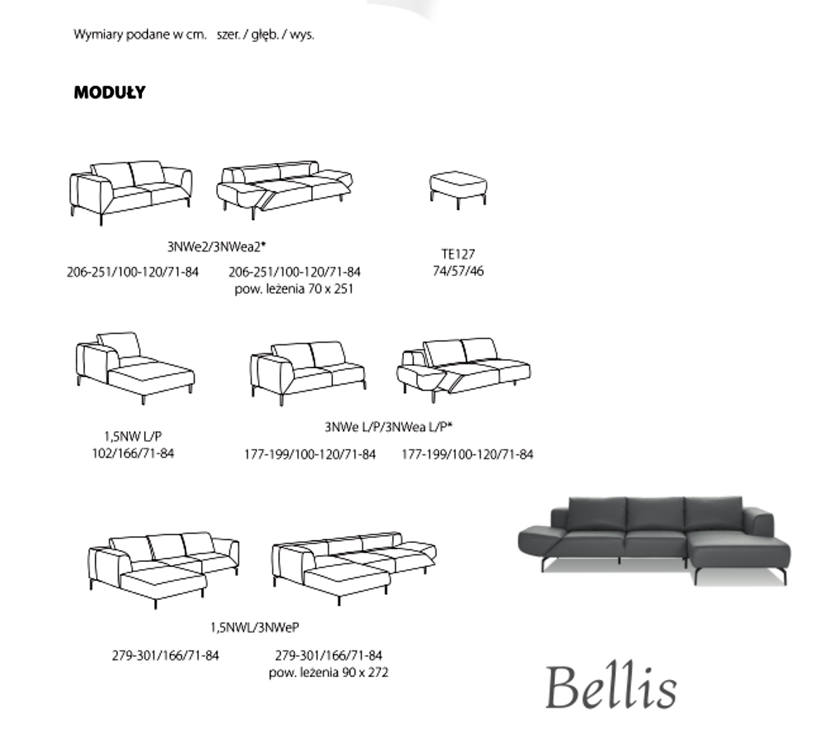 | Rodzaj kanapy | różne wymiary ( składające się z modułów ) |