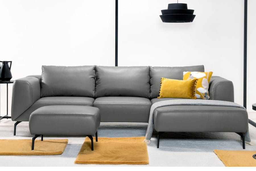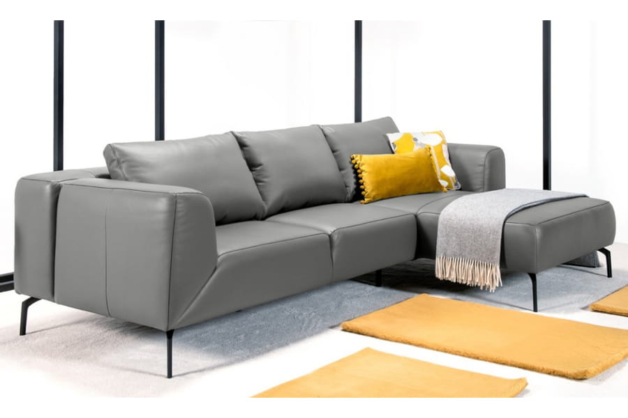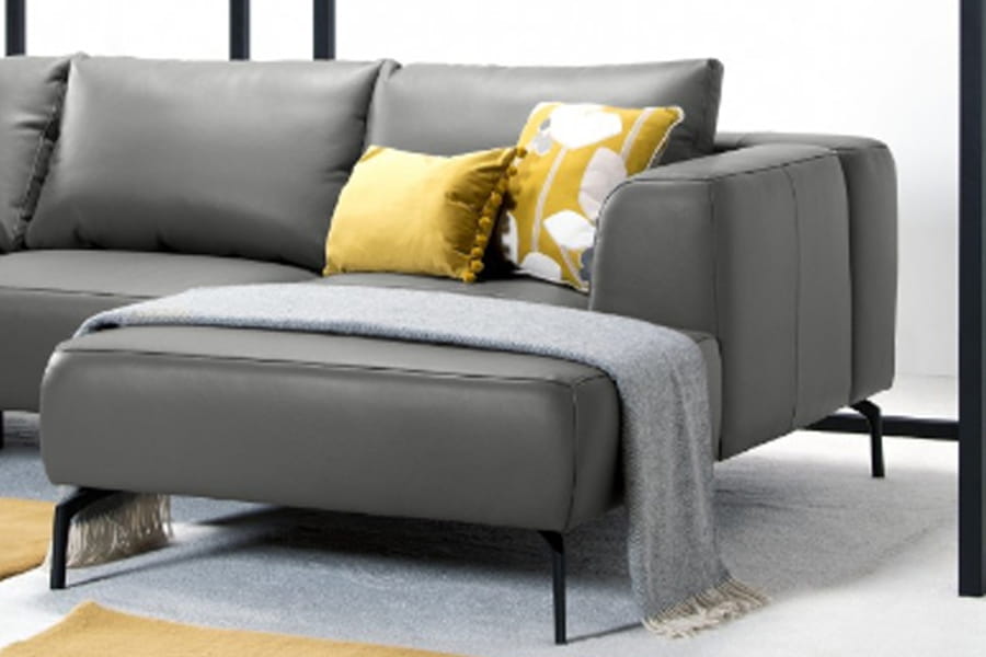 Zastosowane metalowe nóżki podkreślają unikalny wygląd narożnika nadając mu wyrazistości.