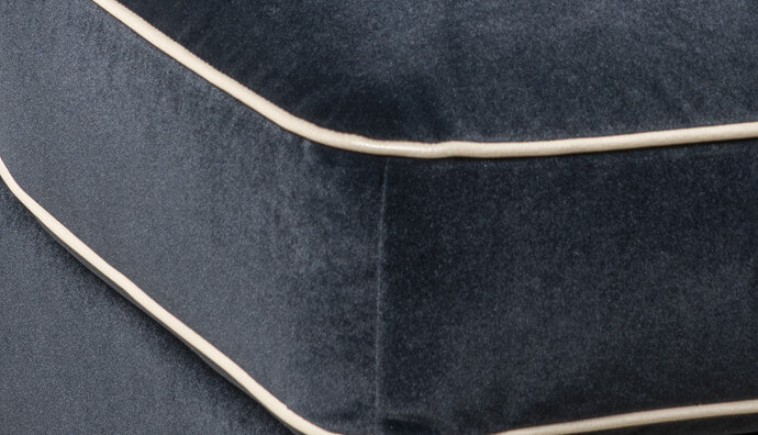 Narożnik zaprojektowany z myślą o długotrwałym użytkowaniu. Zastosowana tkanina obiciowa wyprodukowana jest w technologii „Water Repllent” ogranicza wchłanianie wody – rozlany płyn (woda, kawa, wino) formuje się w kroplę i nie wnika do wnętrza tkaniny (łatwo usunąć zabrudzenie). Tkanina posiada wysoką odporność na ścieranie ( kolor – czarny – Matt Velvet 99).