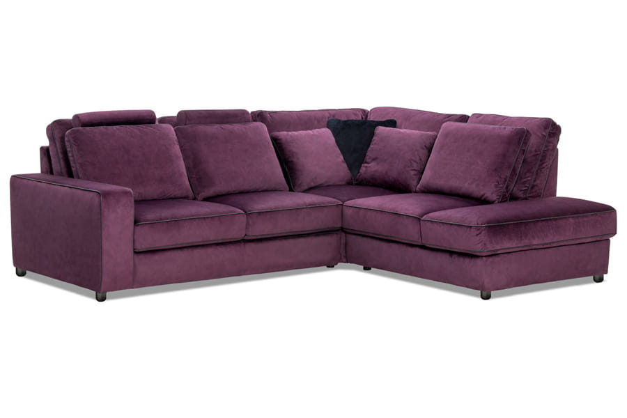 Wszystkie moduły użyte w narożniku mają siedziska wypełnione pianką HR – przyjemnie miękką, a jednocześnie odpowiednio sprężystą. A jego oparcia wyłożone są miękkimi poduszkami ze sztucznym pierzem (to długo zachowująca swe właściwości syntetyczna włóknina). Każde siedzisko modułu wyposażone jest w jedną poduszkę oparciową, wyjątkiem jest element narożny, który ma dwie takie poduszki.
