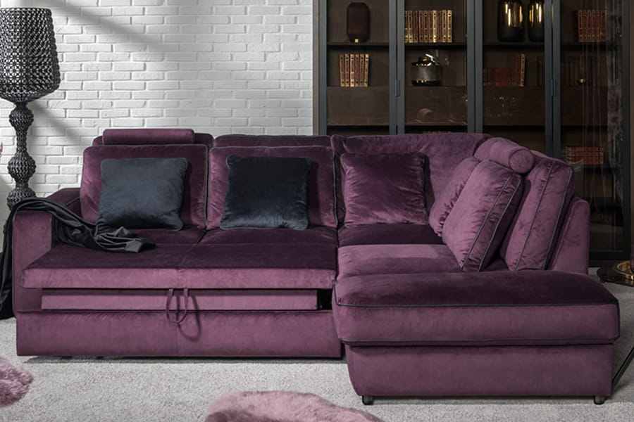 Narożnik zaprojektowany z myślą o długotrwałym użytkowaniu. Zastosowana tkanina obiciowa wyprodukowana jest w technologii „Water Repllent” ogranicza wchłanianie wody – rozlany płyn (woda, kawa, wino) formuje się w kroplę i nie wnika do wnętrza tkaniny (łatwo usunąć zabrudzenie). Tkanina posiada wysoką odporność na ścieranie ( kolor fioletowy ).