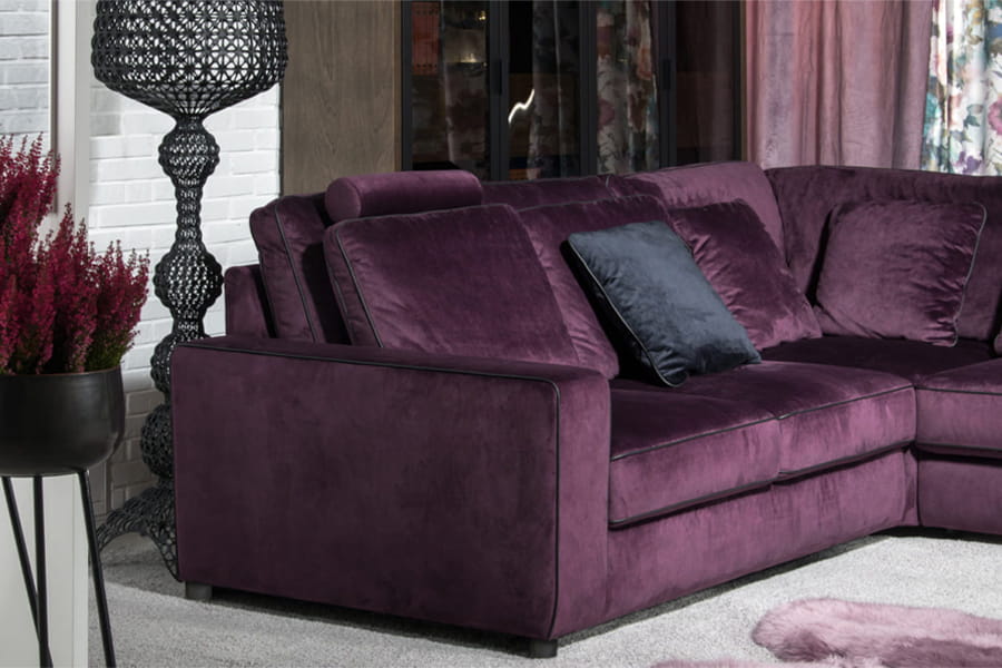 Jak jeszcze bardziej podnieść komfort wypoczynku? Naprawdę łatwo – do siedziska każdego modułu narożnika dodaliśmy dodatkowe poduszki ZX57, a do elementu narożnego trzy kwadratowe ZX57K. Dodatkowe poduszki zmniejszą głębokość siedzisk do ok. 55 cm, a oparcie składające się z dwóch poduch zapewni siedzącemu duże poczucie komfortu. Wygodę wypoczynku na narożniku z pewnością zwiększą dodatkowe zagłówki w kształcie walca, których kołnierz umieszcza się między poduchami oparciowymi.