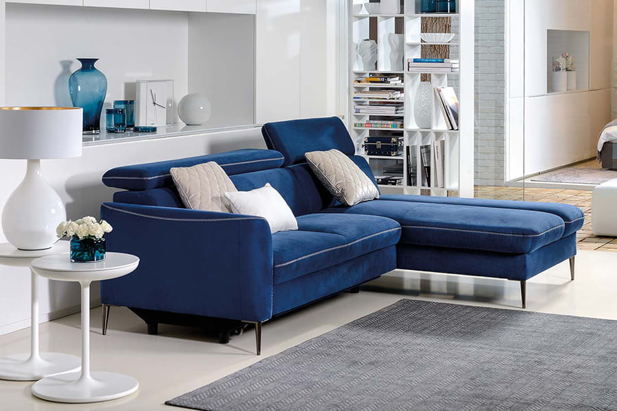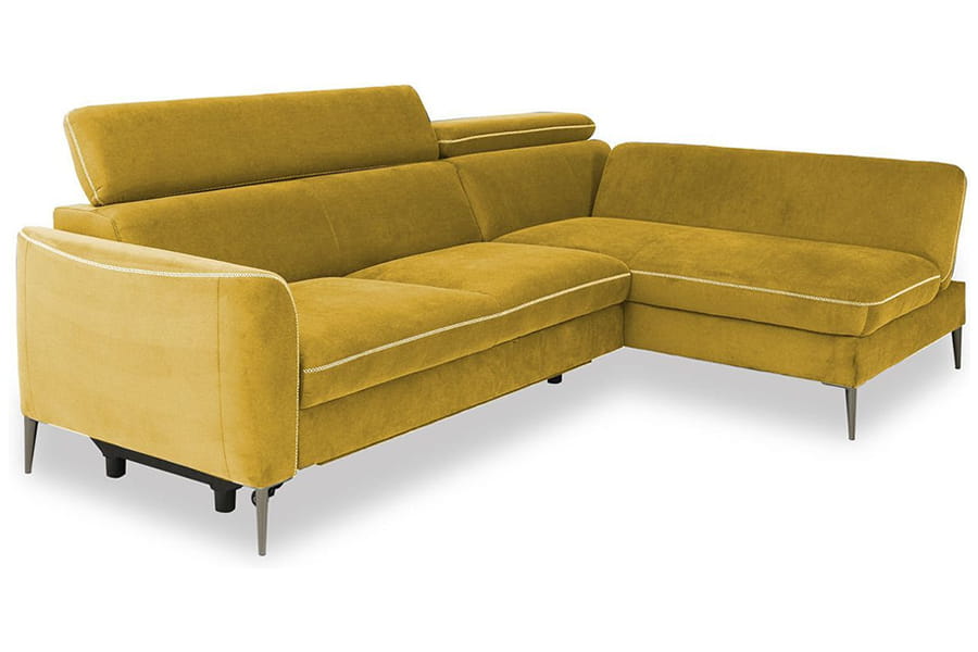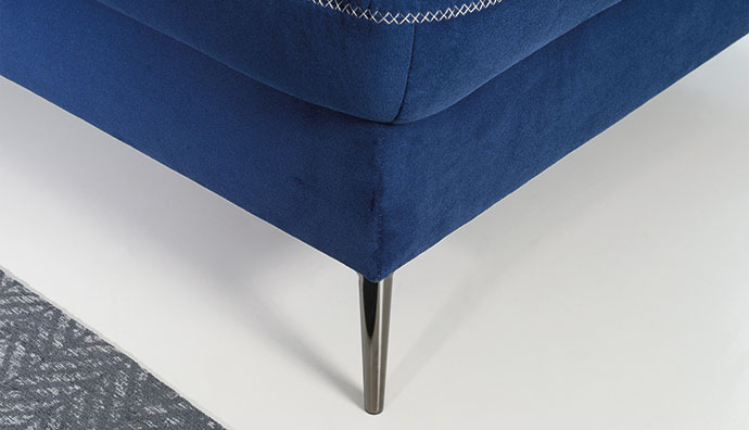 Narożnik został wyposażony w chromowane nóżki, które nie tylko dodają mu charakteru, ale również umożliwiają bezproblemowe utrzymanie czystości. Narożnik zawdzięcza swój niezwykły charakter dzięki dobrze przemyślanym dodatkom.
