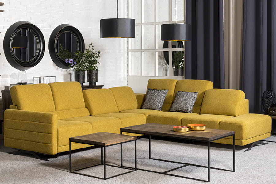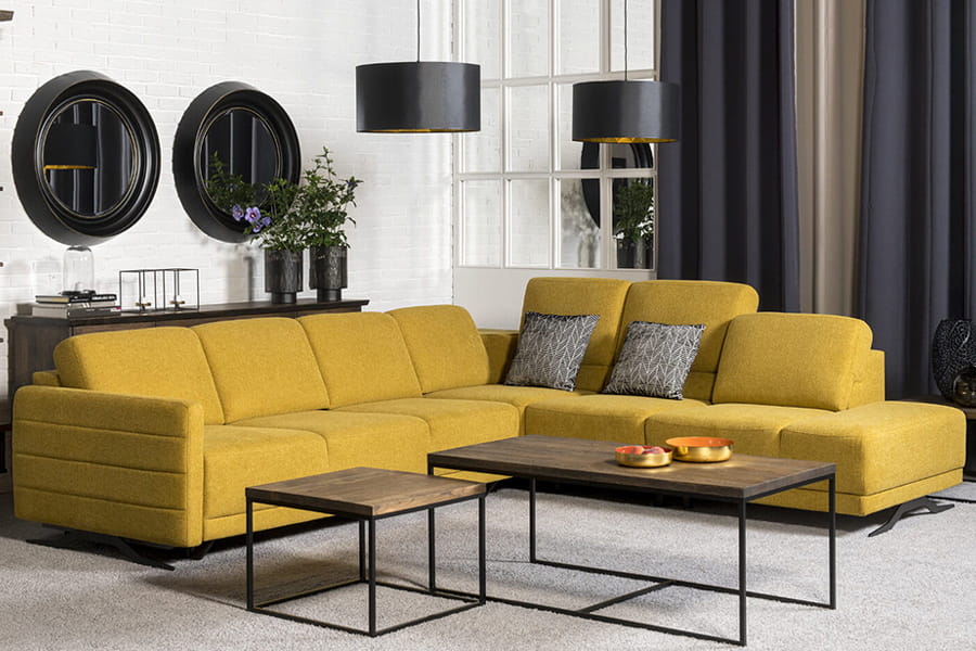 Nowoczesny zestaw wypoczynkowy tworzony z modułów. Pomyślany zarazem rozsądnie i z błyskiem - w sam raz na miarę przestrzennych możliwości współczesnych salonów. Narożnik vero Ibisco kompleksowo zadba o potencjalnego gościa - regulacja wysokości oparcia oraz podłokietnik z możliwością odchylania na zewnątrz to gwarancja, że podczas domowego wypoczynku każdy poczuje się wyjątkowo. Prezentowany model jest w obiciu Brego 68 – musztarda. Zestaw posiada funkcje spania typu „PUMA” oraz pojemnik na pościel.