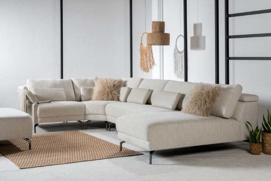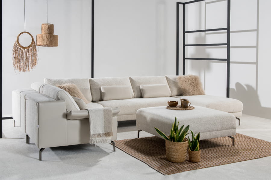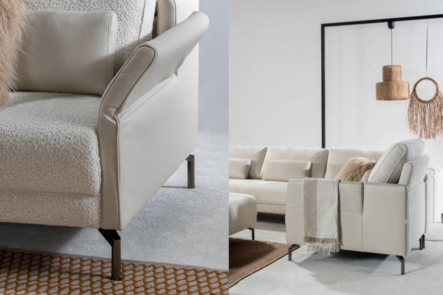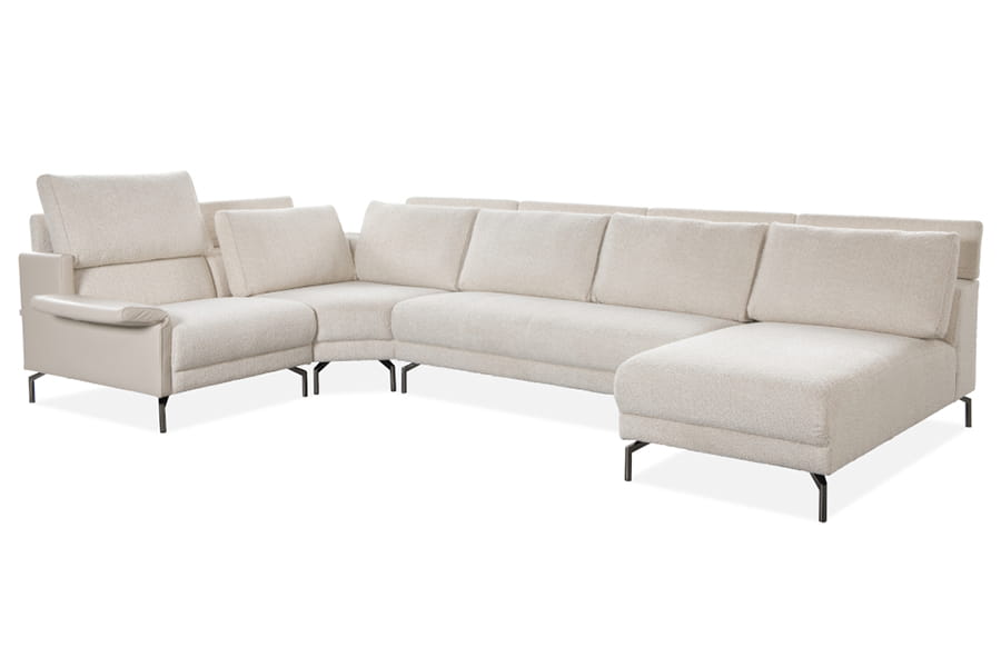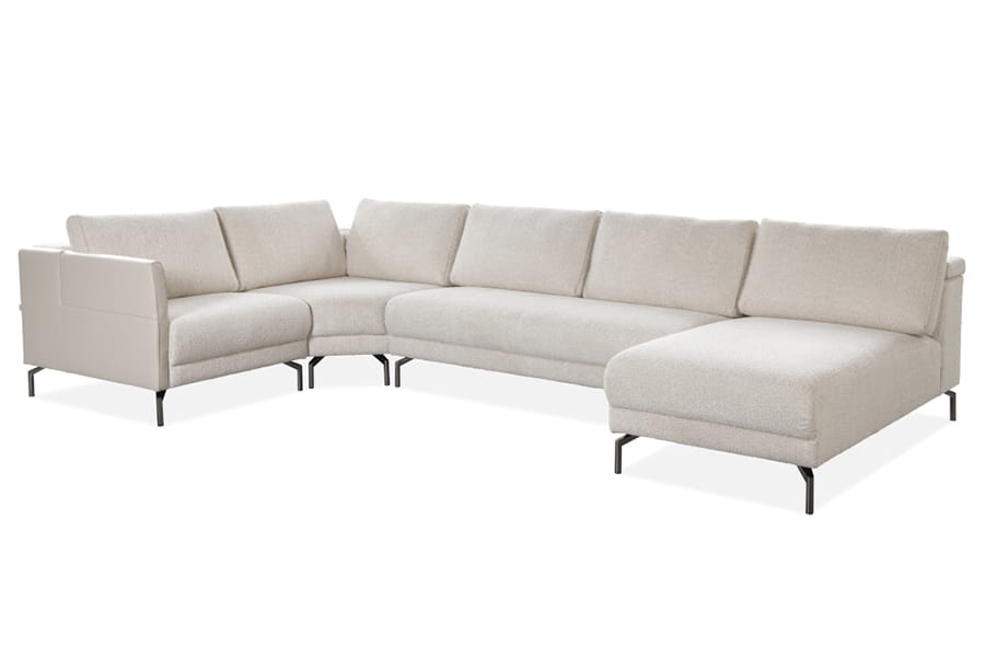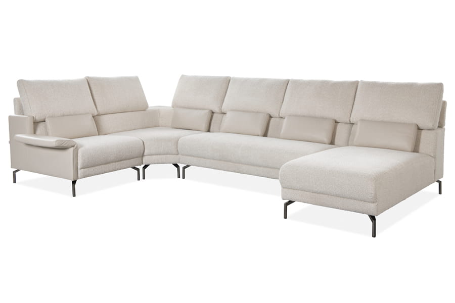 Zestaw wypoczynkowy tworzony z modułów. Zarys stosunkowo niski, atrakcyjny, asymetryczny i urozmaicony. Moduły uniesione są nad podłogę na cienkich metalowych nóżkach. Siedziska są lekko wypukłe, a oparcia utworzone z płaskich poduch. Podłokietniki z możliwością odgięcia tworzą ciekawą koncepcję. Każdy moduł jest starannie tapicerowany, tworząc nie tylko wyjątkowy komfort, ale także estetyczną bryłę wolnostojącą. Kreuj własną strefę relaksu, łącząc moduły według własnych upodobań.
