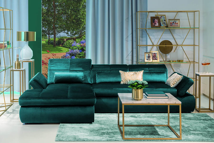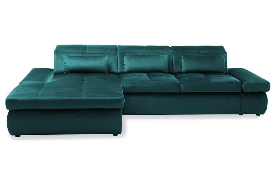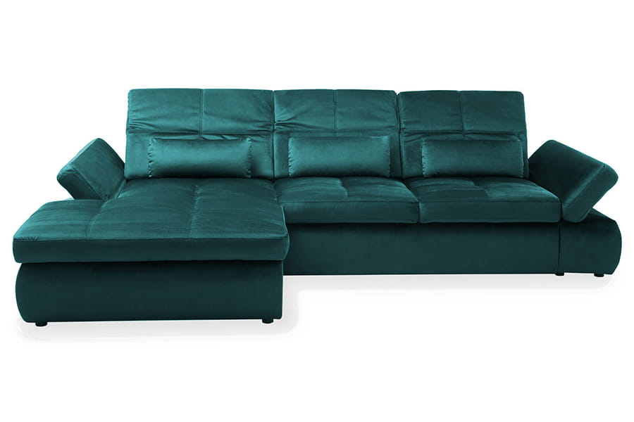 Nowoczesny i funkcjonalny narożnik to propozycja dla wszystkich, którzy poszukują do swojego salonu wypoczynku o wysokiej trwałości i oryginalnym designie. Mebel ten w całości produkowany jest w Polsce ze starannie wyselekcjonowanych materiałów, dlatego też spełnia wszystkie krajowe i europejskiej standardy jakości. Piękny odcień butelkowej zieleni idealnie wpasuję się do Twojego salonu. Narożnik jest wielofunkcyjny, posiada pojemnik na pościel, regulowane zagłówki oraz podłokietniki. W skład zestawu wchodzą poduszki lędźwiowe – 3 szt.