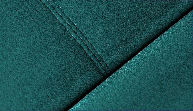Zaprojektowany z myślą o długotrwałym użytkowaniu. Zastosowana tkanina obiciowa wyprodukowana jest w technologii „Water Repllent” ogranicza wchłanianie wody – rozlany płyn (woda, kawa, wino) formuje się w kroplę i nie wnika do wnętrza tkaniny (łatwo usunąć zabrudzenie). Tkanina posiada wysoką odporność na ścieranie ( kolor – butelkowa zieleń).