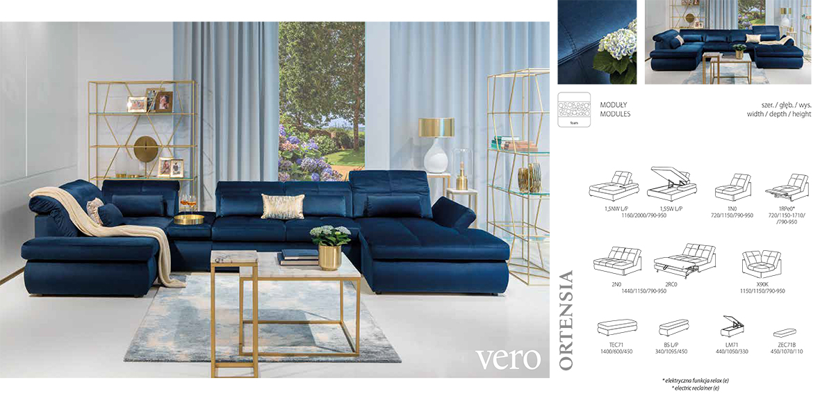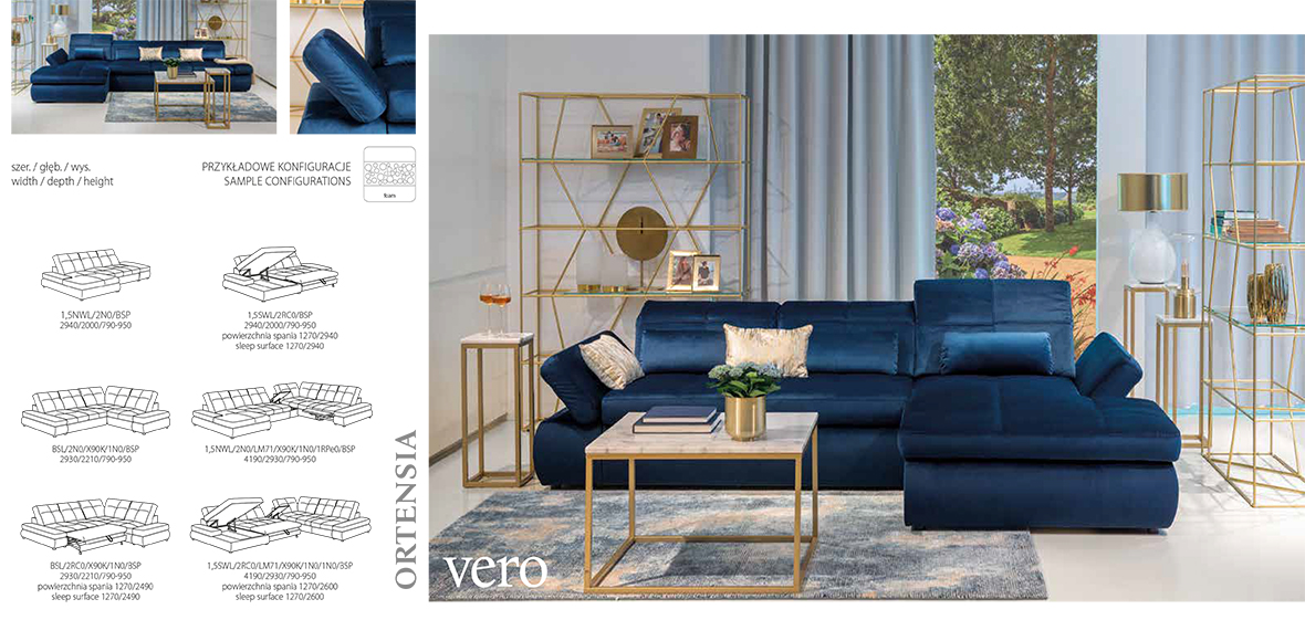 Narożnik VERO - ORTENSIA XL BSL/1N0/X90K/2RC0/1,5SWP ( z funkcją spania i pojemnikiem )