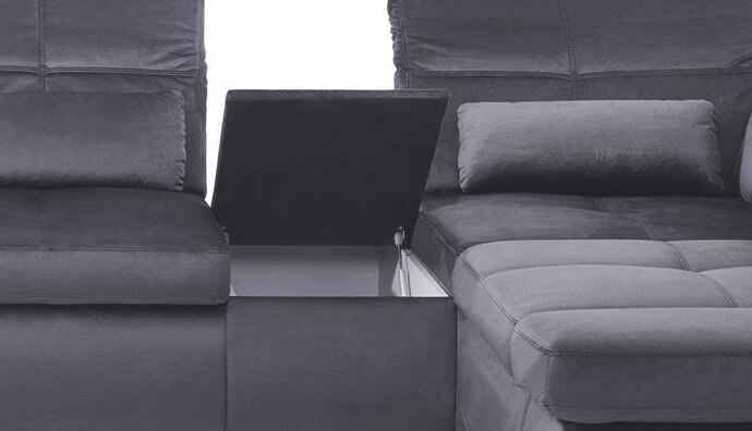 Praktycznym elementem jest pomocnik ze schowkiem, który doskonale sprawdzi się jako stolik na komputer lub szklanki z napojami. Można go również wykorzystać jako praktyczny schowek na czasopisma, książki, pilota do TV etc.