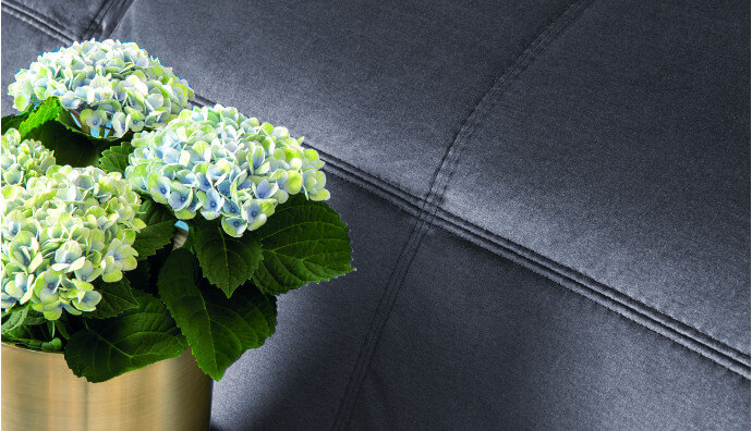 Zaprojektowany z myślą o długotrwałym użytkowaniu. Zastosowana tkanina obiciowa wyprodukowana jest w technologii „Water Repllent” ogranicza wchłanianie wody – rozlany płyn (woda, kawa, wino) formuje się w kroplę i nie wnika do wnętrza tkaniny (łatwo usunąć zabrudzenie). Tkanina posiada wysoką odporność na ścieranie ( kolor – szary – Monolith 85).